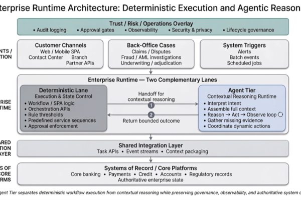 Most large enterprises run on deterministic software foundations. Business rules are embedded within workflows, state transitions are modeled explicitly and escalation paths are defined in advance. System behavior is specified in advance, making outcomes predictable. Meaningful scenarios are encoded as conditional branches and validated before release. For decades, this approach has delivered the reliability and…