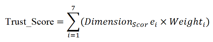 Each dimension is scored, normalized and then combined into an overall trust score. One common aggregation formula is:
